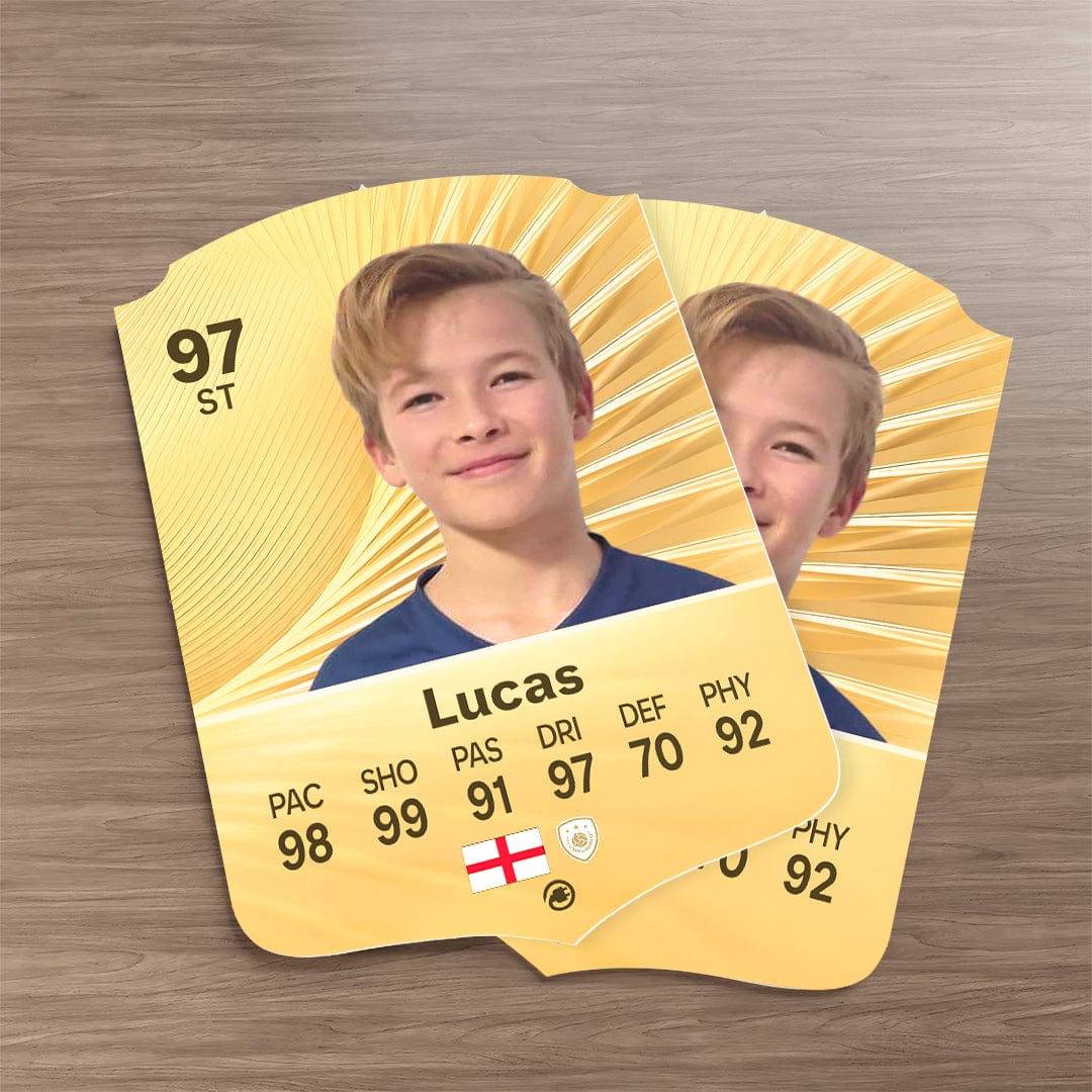 CardsPlug is home to the world’s favourite personalised football cards. Our easy football card builder lets you make a real life football card with your own name, photo, and skill ratings. With 100+ designs to choose from and some inspired by EA SPORTS FC 26 cards seen in EA FC 26, EA FC 25 and FC 24 as well as FIFA cards seen in games like FIFA 23 and FIFA 22.