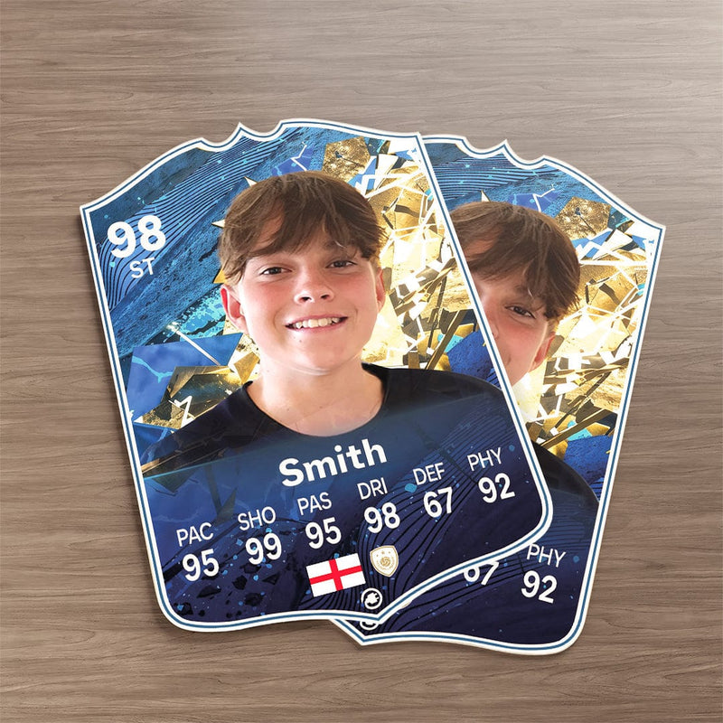 CardsPlug is home to the world’s favourite personalised football cards. Our easy football card builder lets you make a real life football card with your own name, photo, and skill ratings. With 100+ designs to choose from and some inspired by EA SPORTS FC 26 cards seen in EA FC 26, EA FC 25 and FC 24 as well as FIFA cards seen in games like FIFA 23 and FIFA 22.
